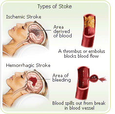 - εγκεφαλικό έμφρακτο, δηλαδή απόφραξη ενός αγγείου του εγκεφάλου και κατά συνέπεια ισχαιμία, δηλαδή νέκρωση της περιοχής αυτής του εγκεφάλου, λόγω μειωμένης αιμάτωσης και τροφοδότησής της με τα απαραίτητα " καύσιμα" και οξυγόνο,
